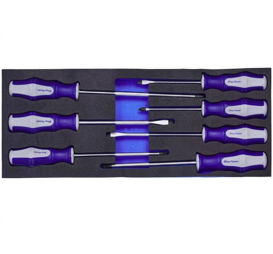 Constructed with chrome-plated shafts for superior corrosion resistance and ergonomic oil-resistant handles, these screwdrivers provide comfort and control even during long working sessions. This set is built to withstand heavy-duty use while maintaining professional-grade performance.