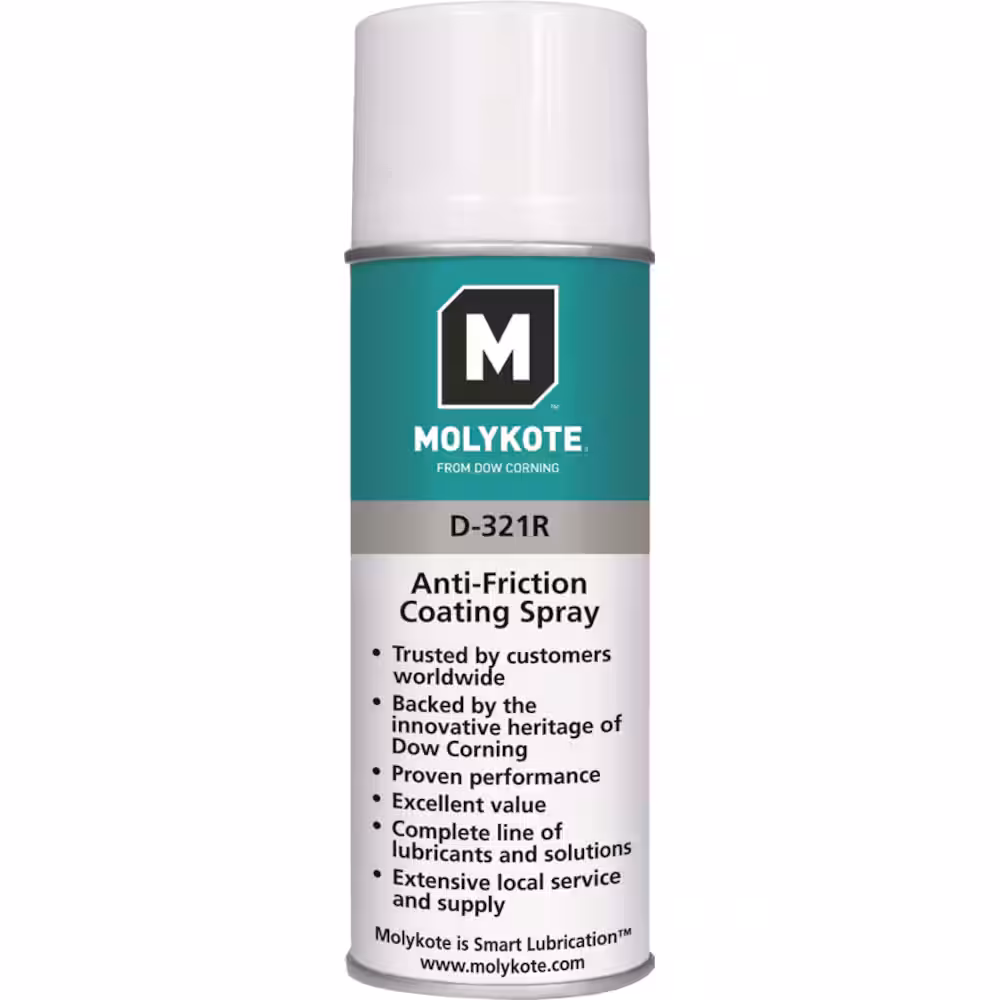 MOLYKOTE® D-321 R Anti-Friction Coating Spray is a high-performance, air-drying lubricant designed to provide durable, dry-film lubrication for metal surfaces. Its formulation includes solid lubricants such as molybdenum disulfide (MoS₂) and graphite, suspended in an organic binder with solvents. This combination ensures effective lubrication under extreme conditions, including high loads, high temperatures, and vacuum environments.